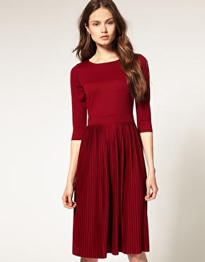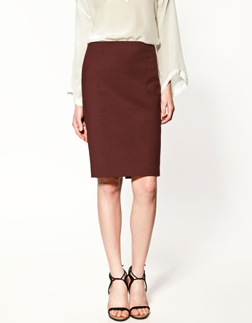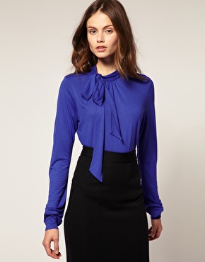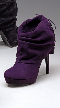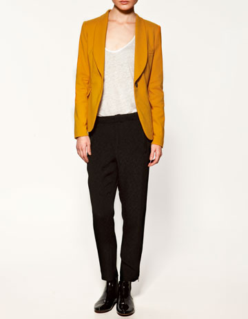 mustard blazer, maroon skirt, green denim jacket, blue tee, cobalt bow top, red midi dress, purple top, burgundy twill pants, purple pump, violet bootie, green and yellow pumps